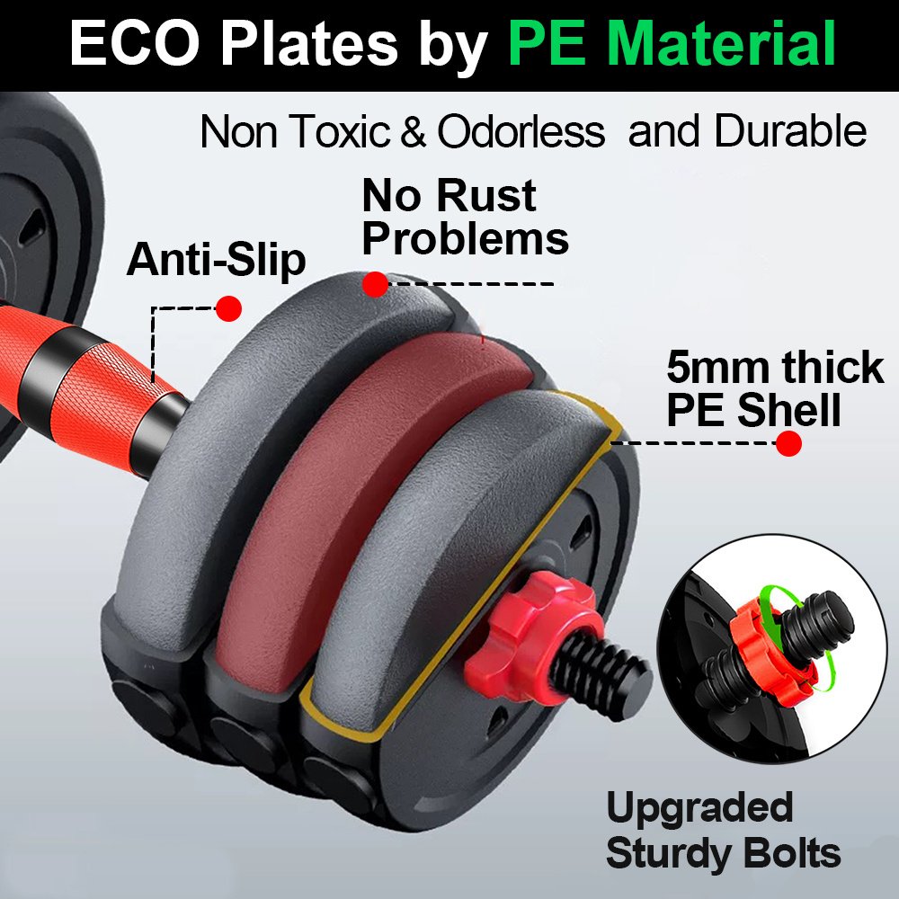 Home > 44 LBS Adjustable Dumbbell Sets Barbell Weight Set for Home Gym, 2 in 1 Dumbellsweights Set for Men and Women - 20KG 44LBS