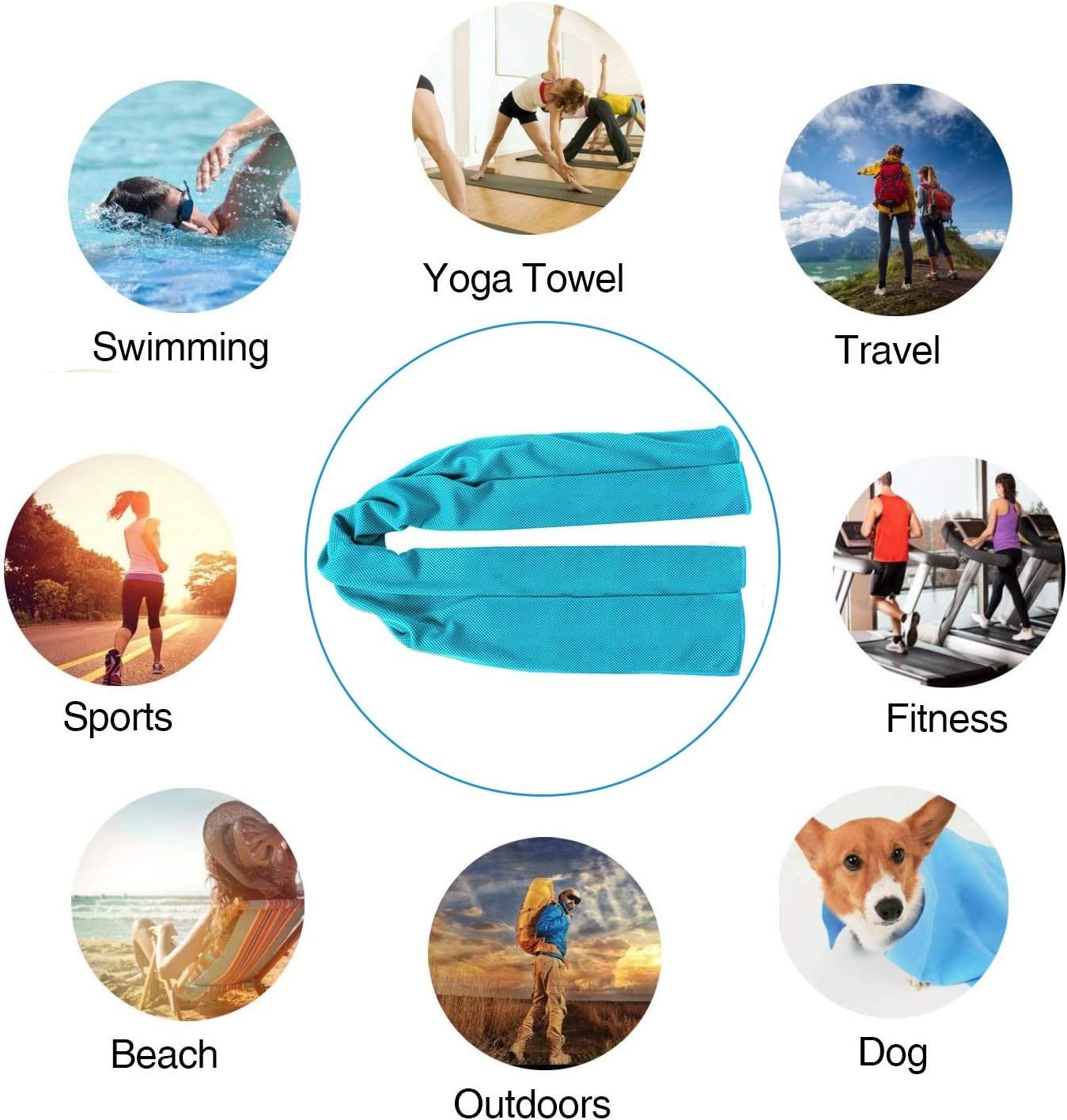 3.Sports towels are perfect for sports enthusiasts for golf, swimming, football, exercise, gym and fitness, also for fever or headache treatment, heatstroke prevention, sun protection, cooling down when absorbed. Keep yourself cool on hot summer days, workouts, outdoor adventures or migraines