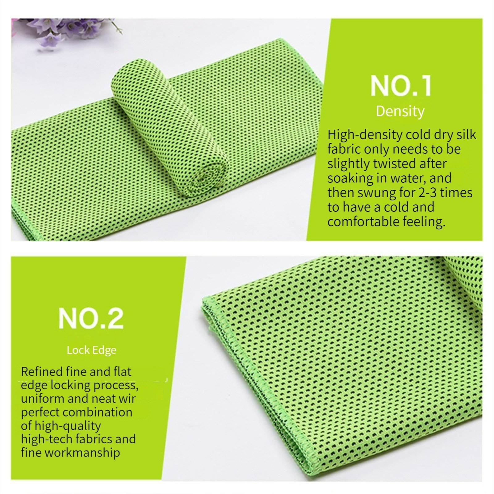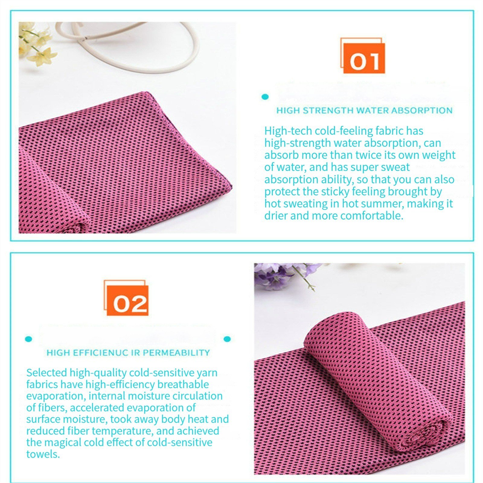 1.The cooling towel is made of super evaporative breathable material. Dedicated to the physical evaporation of moisture, no chemicals are used in the manufacture of cooling towels