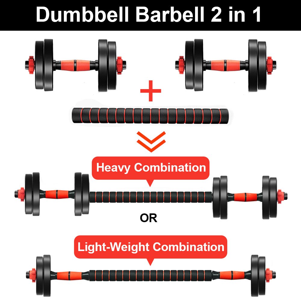 2 in 1 Multifunctional Dumbbell Set: The dumbbell set can be adjusted into barbell set easily with the central connector.
