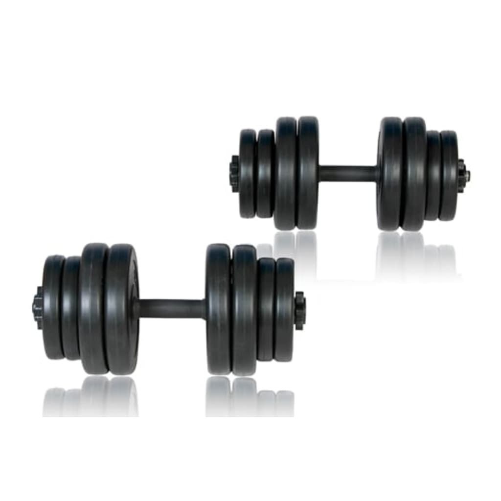 The dumbbells have anti-slip plastic handles so you will be able to work-out without having to worry that the dumbbells will slip from your hands and fall. The screw-caps have star bolts to make sure that the weight plates are always mounted firmly and secure on the bar. The bar of the dumbbell is made of strong metal.