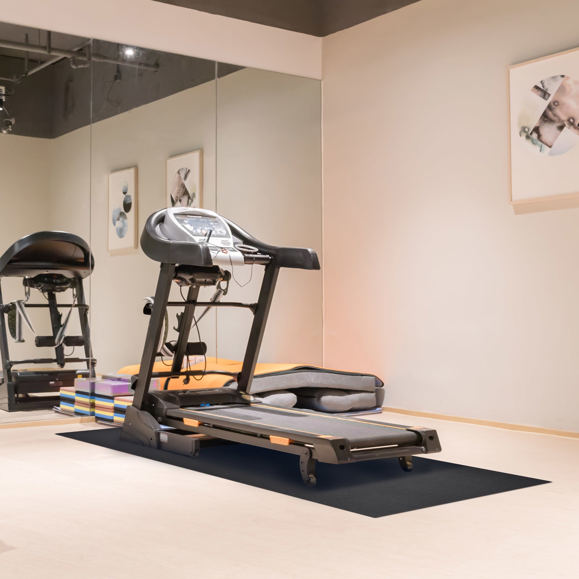 - Versatile Use - Ideal for home; gym and indoor use; well protects large treadmills; stationary bikes; exercise bikes; elliptical machines; cross trainers; rowing machines; and other heavy equipment; Also functioned as Exercise Bike Mat; Fitness Mat; Elliptical Mat; Jump Rope Mat; Gym Mat