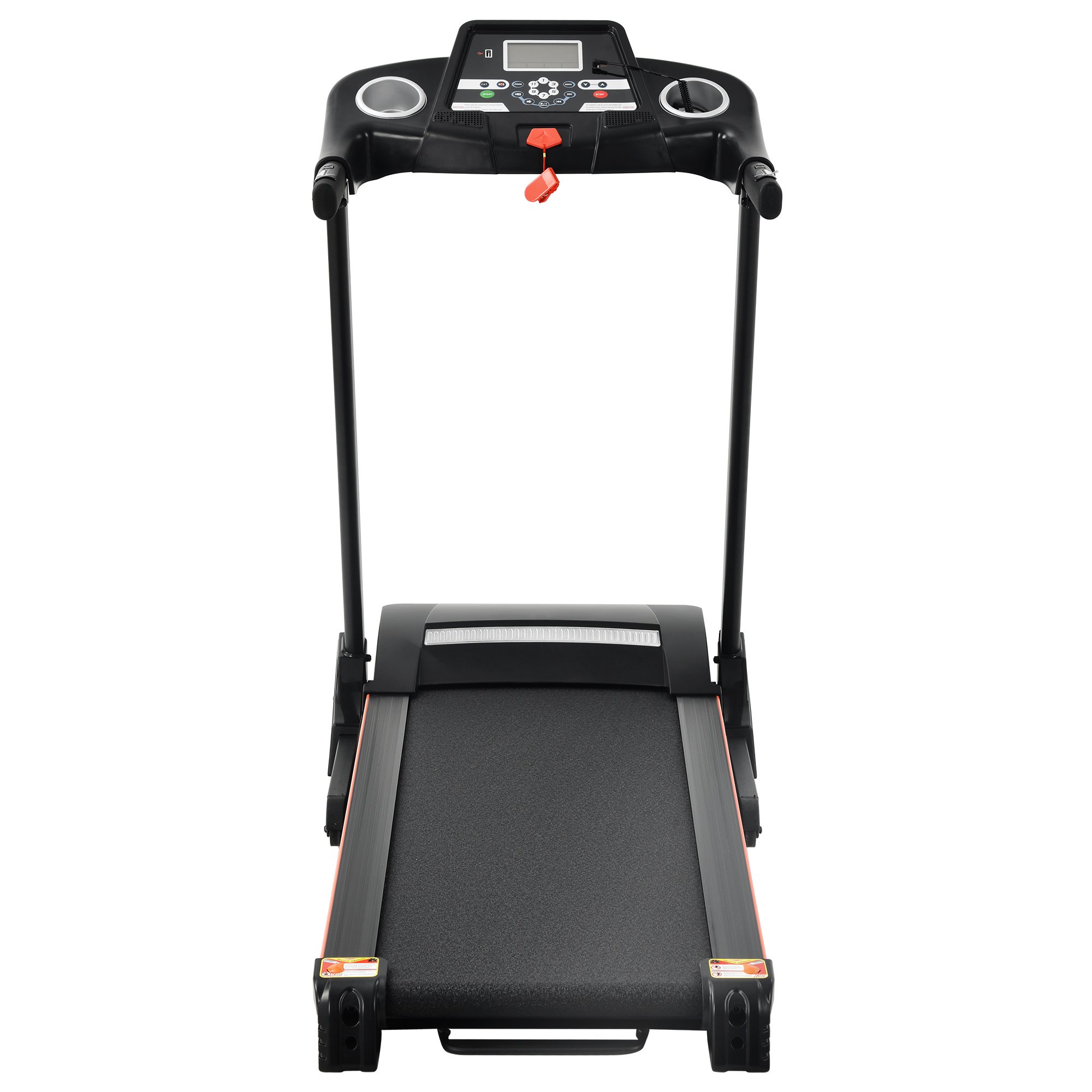 [5" Blue-Ray LCD Display & 16.5" X 45" Rubber Running Belt]Features with 5" blue-ray LCD display, this treadmill provides better watching experience. It shows Time, Distance, Calories, Speed, Pulse. 16.5" X 45" big rubber running belt provides more comfortable and more stable workout experience.