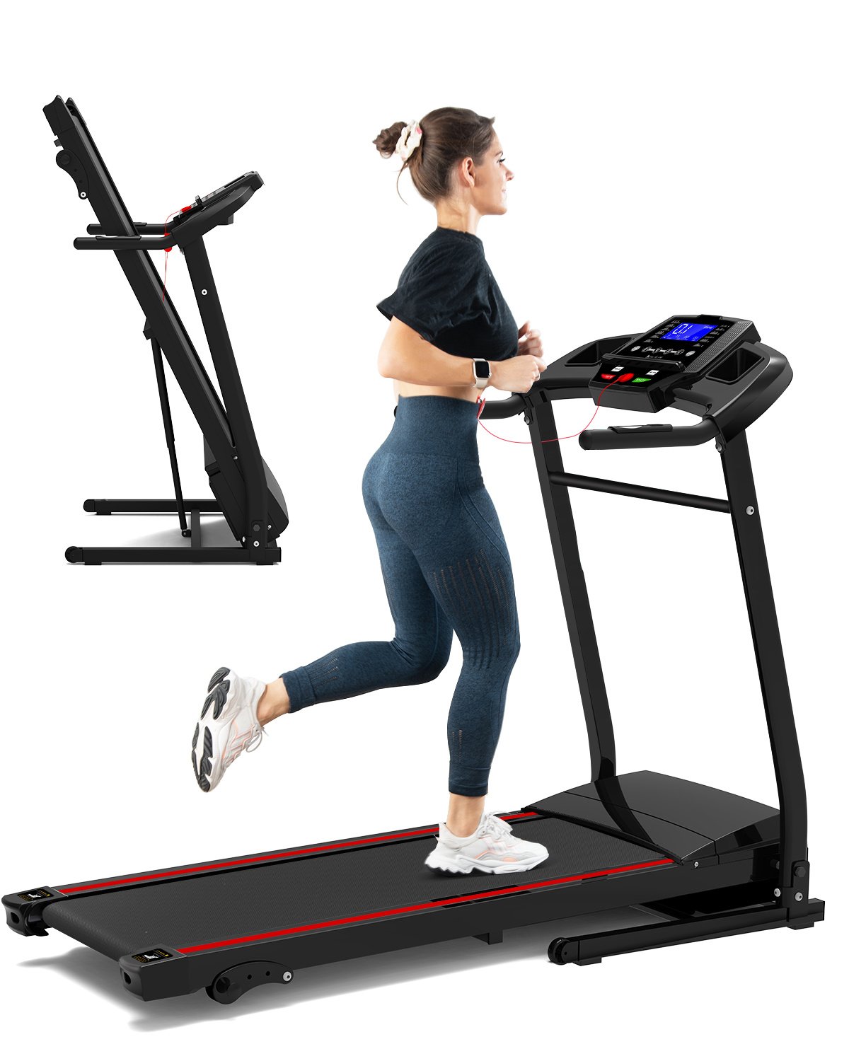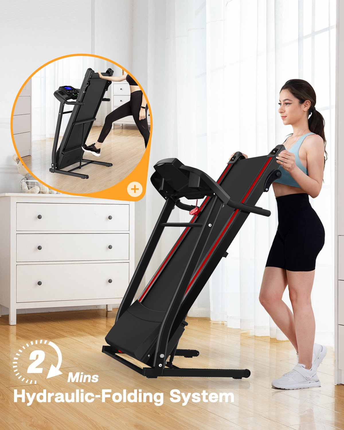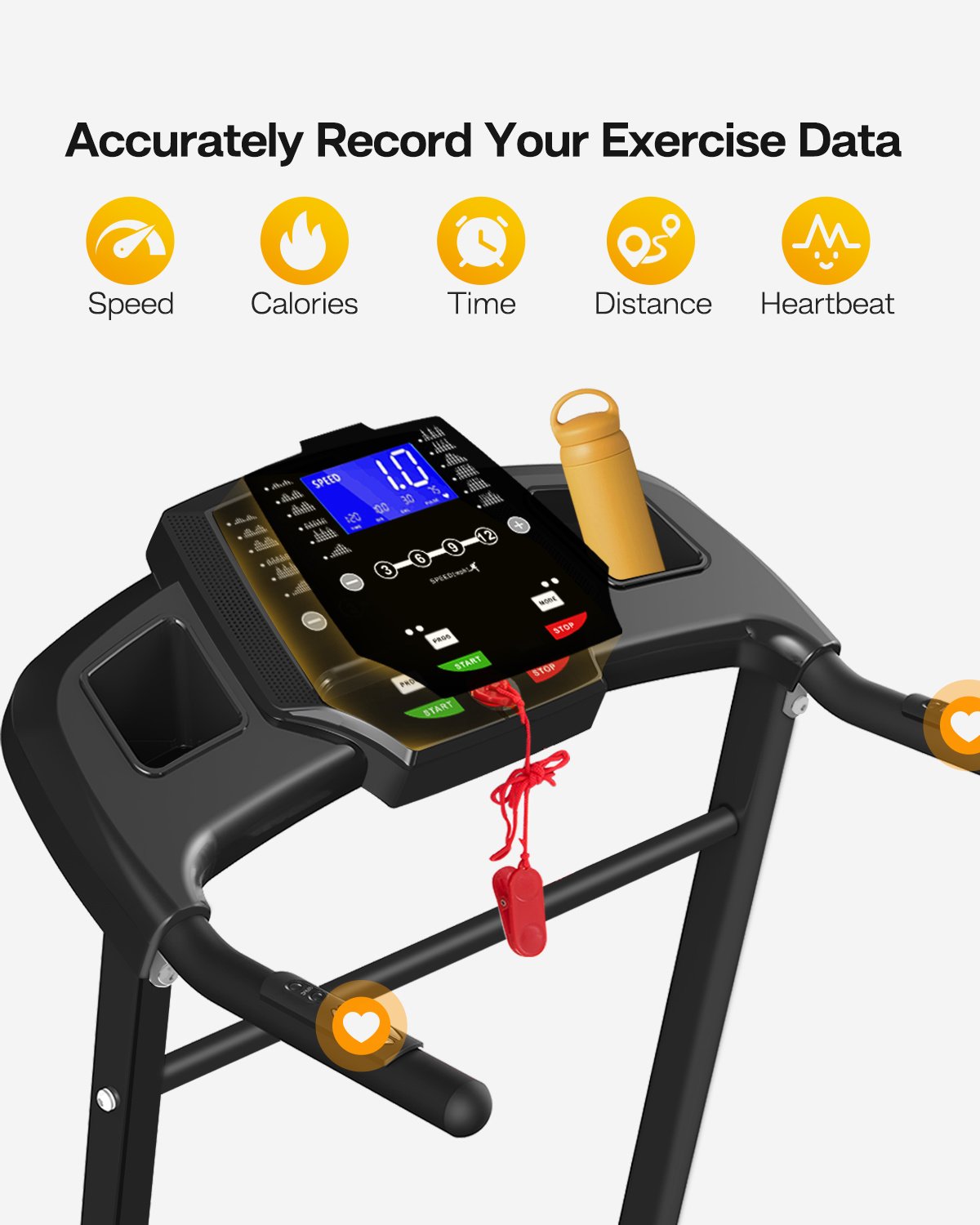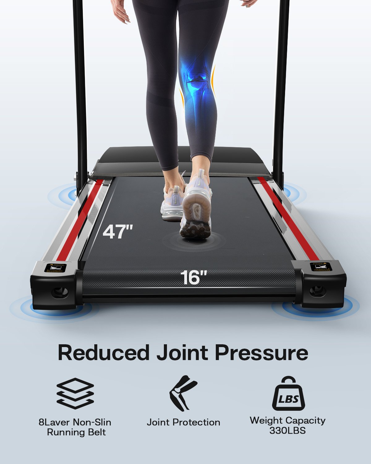 2.Heavy-Duty Steel Support Up To 330lbs: The folding treadmills is made of stable heavy-duty steel frame support up To 330lbs user Weight, which max speed up to 7.5MPH (12KM/H).