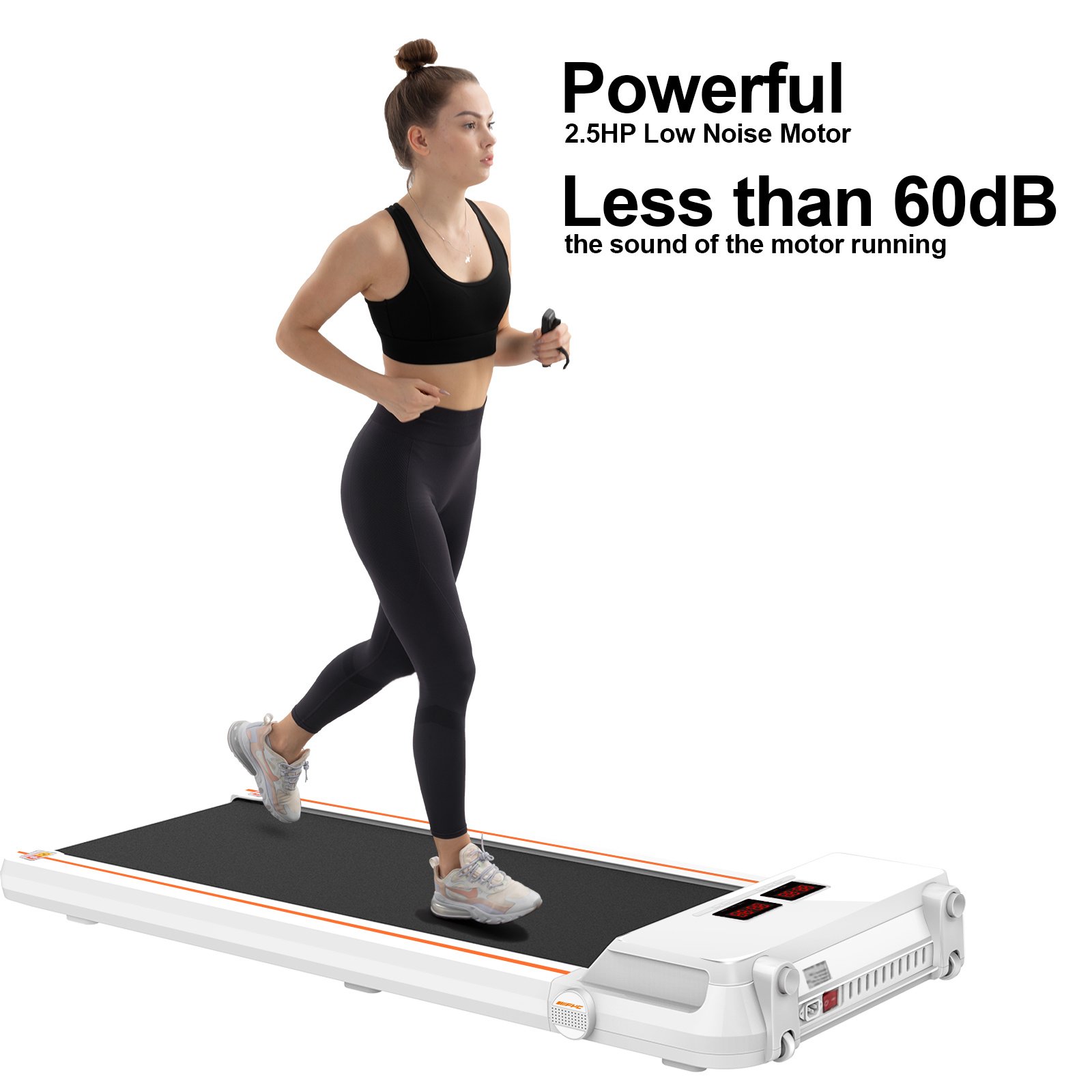 [2 In 1 Professional Design]This portable treadmill allows you to power through long distance running(0.5-7.5mph) and daily walking(0.5-4.0ph). Past thousands of test to ensure quietness for workout every time without disturbing others. Fitted with a 2.5HP HIGH QUALITY motor, exercise with power.