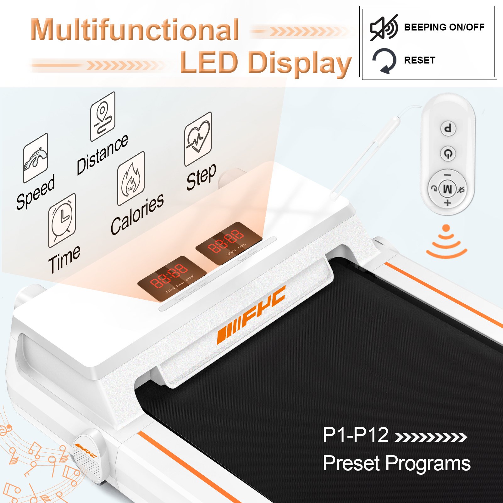 Connect the under desk treadmill to your phone via Fitshow APP; so you can monitor your fitness data and fun together with others while you are exercising. The remote control is convenient to adjust the running speed; mode and program.