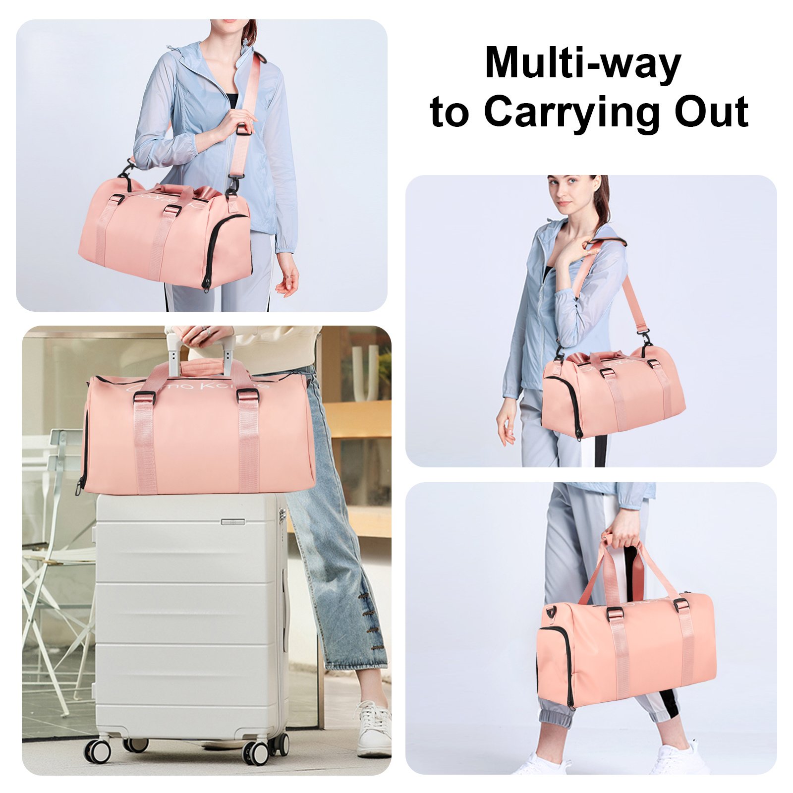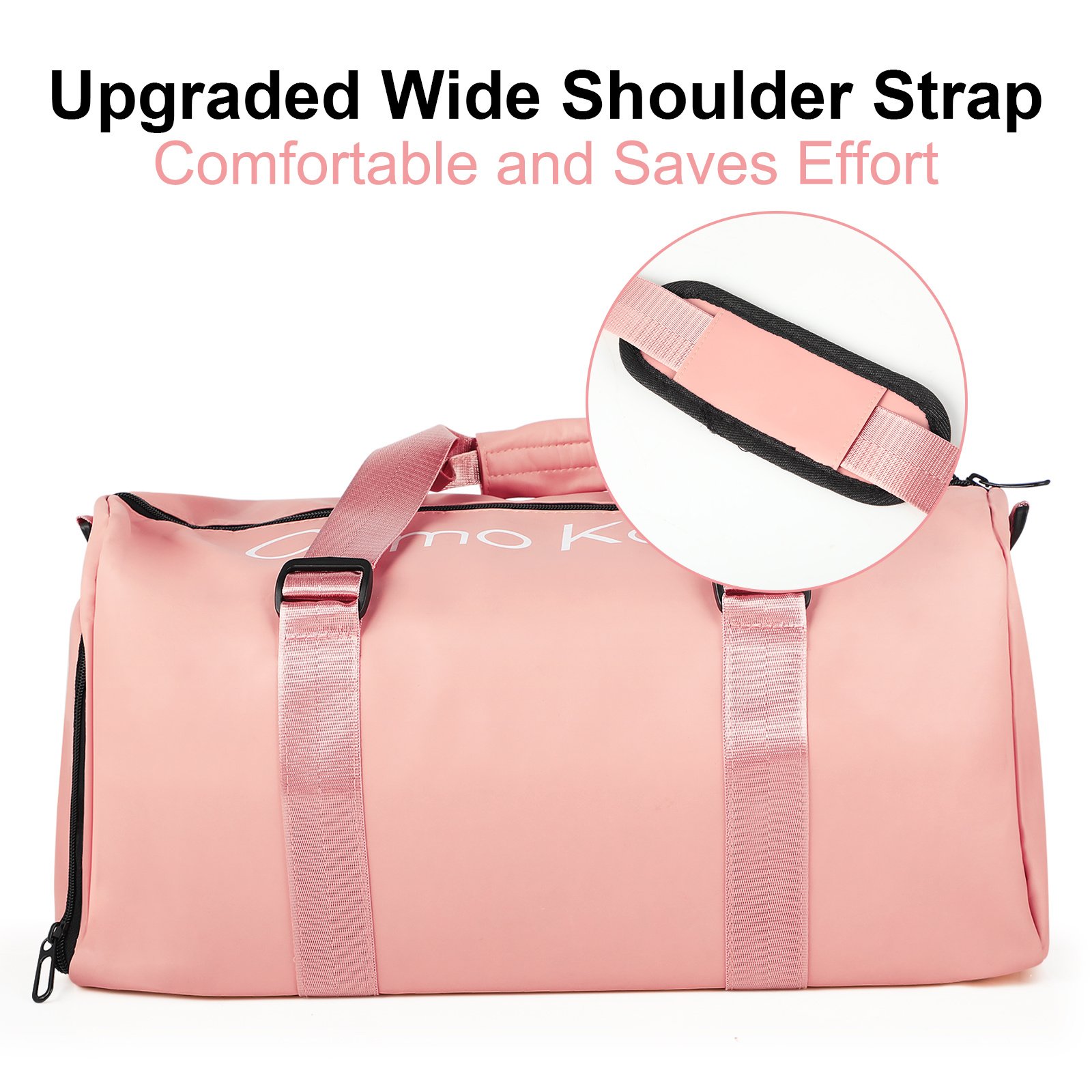 [PERFECT SIZE] This duffel bag is suitable for women, men, and kids. Measuring 19"x9.8"x9.8", it's small enough to carry on or stack it on your suitcase yet big enough for work travel or beach getaway. You can use it for various activities, and sports such as tennis, dance, golf, football, cross fit, and swimming.